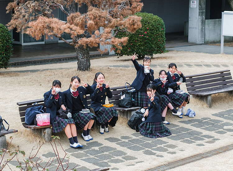 各方面から直通バスに乗って登校します。自転車通学も許可制で認めています。