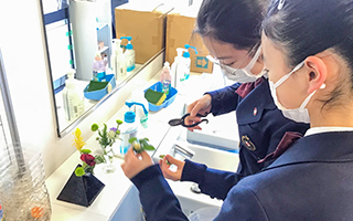 生けたお花のお世話も、部員の毎日の大切な活動です。