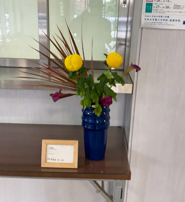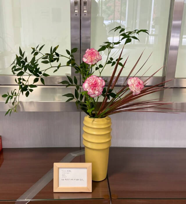 お花を運んでくるの、大変だったでしょう?と聞かれると、電車の中でも多くの方が気遣ってくれ、むしろ皆親切にしてくれお花のスペースを空けて下さったので恐縮してしまいました。と部長さん。