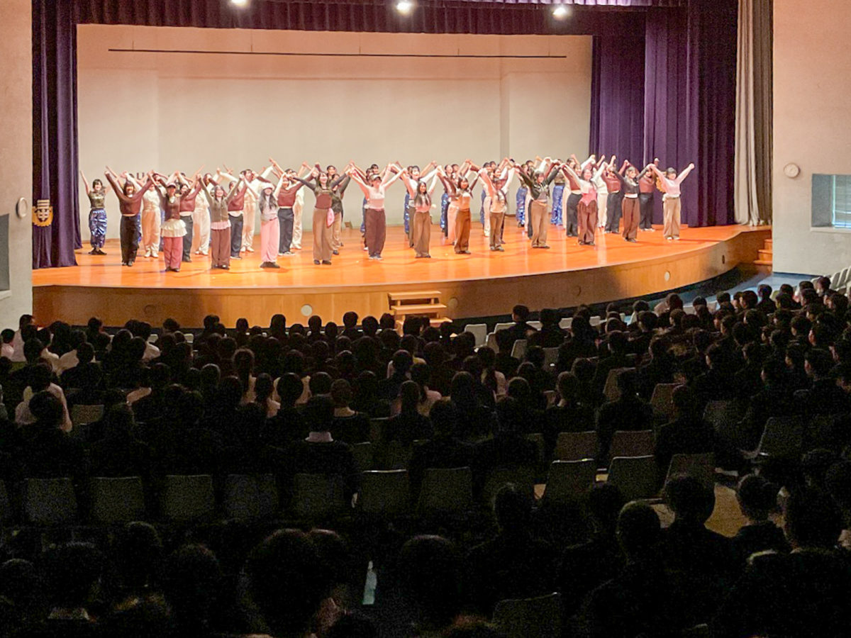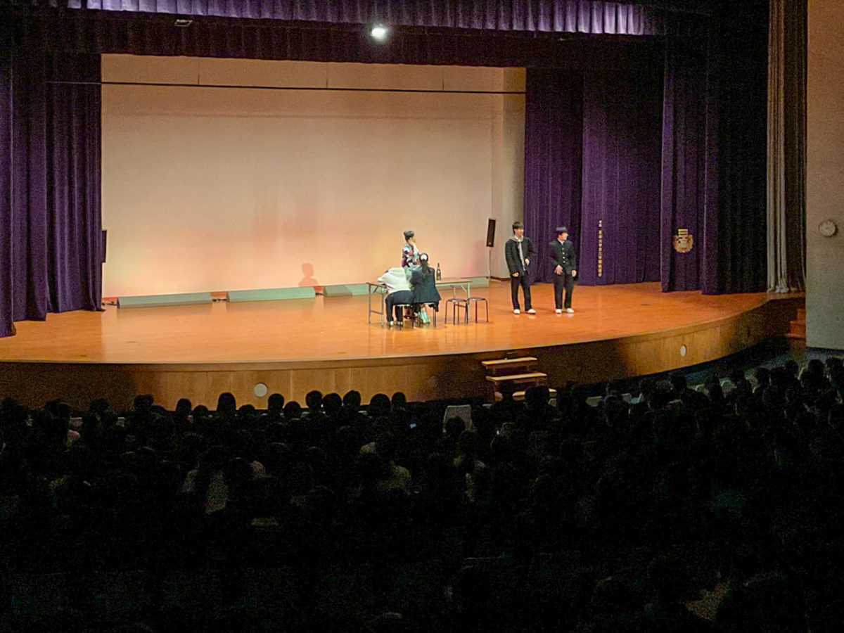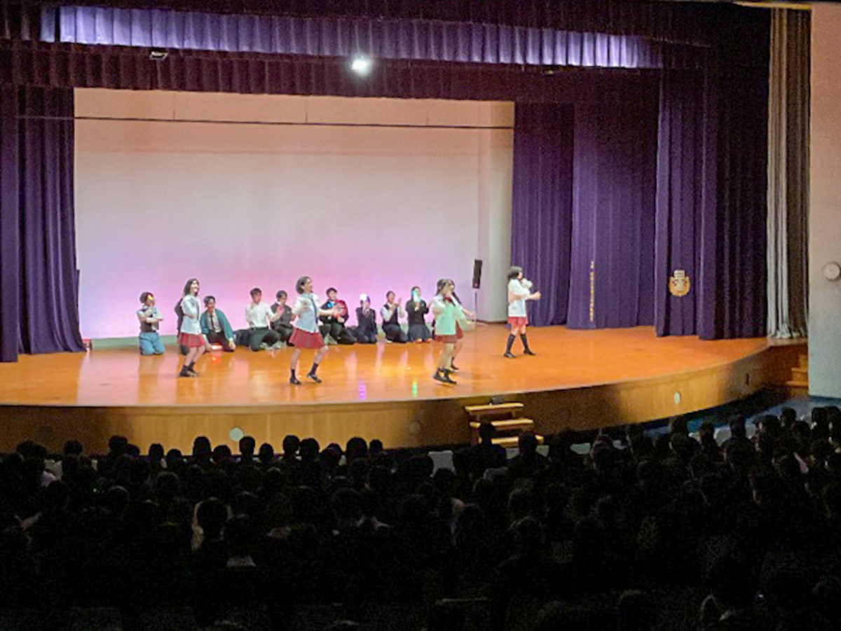 4月10日に講堂にて、新しく入学した中学一年生と高校一年生に向けて、吹奏楽部とダンス部と演劇部がパフォーマンスを繰り広げてくれました。