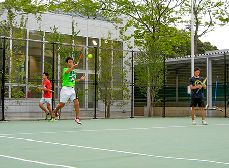- テニスコート(砂入り人工芝4面、ハードコート1面 ※女子と共用)[すべて夜間照明付き]