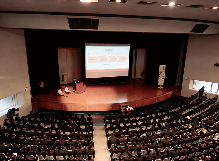 - 私は⾼1の時の担任。等⾝⼤で⾃分を語ってくれたところが、在校生の⼼に残ったと思います。成長した姿を見て感慨深い気持ちになりました。