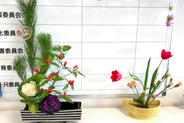 茶道・華道部 「花のある学校」~歓迎・応援花~
