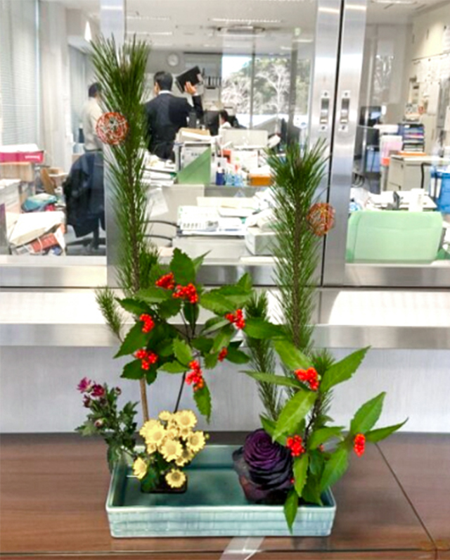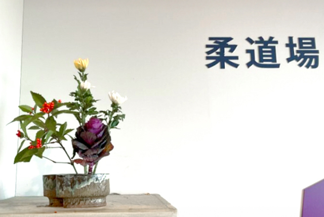 お正月花は、剣道場、柔道場にも飾らせていただきました。