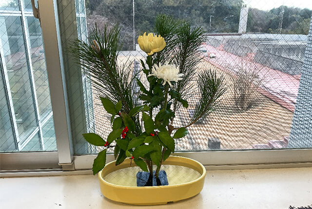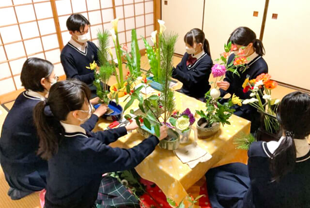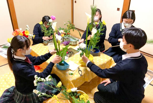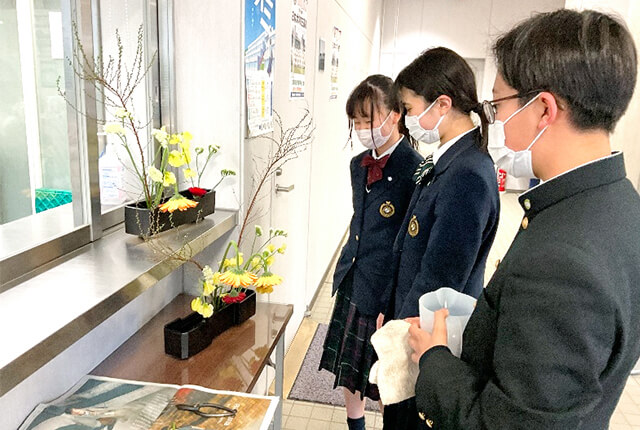 さて、本校では1月22日(木)に行われる高校推薦入試に向けて、茶道・華道部員で受験生に向けて応援花を生けました。