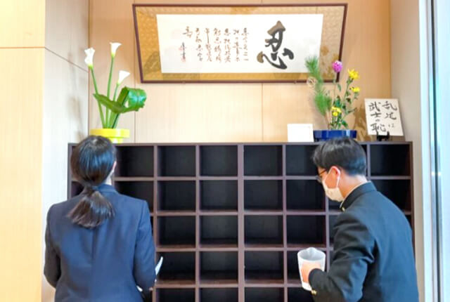 各場所に飾らせていただいていたお花をお下げし、放課後の活動に向けて作法室の準備をします。
