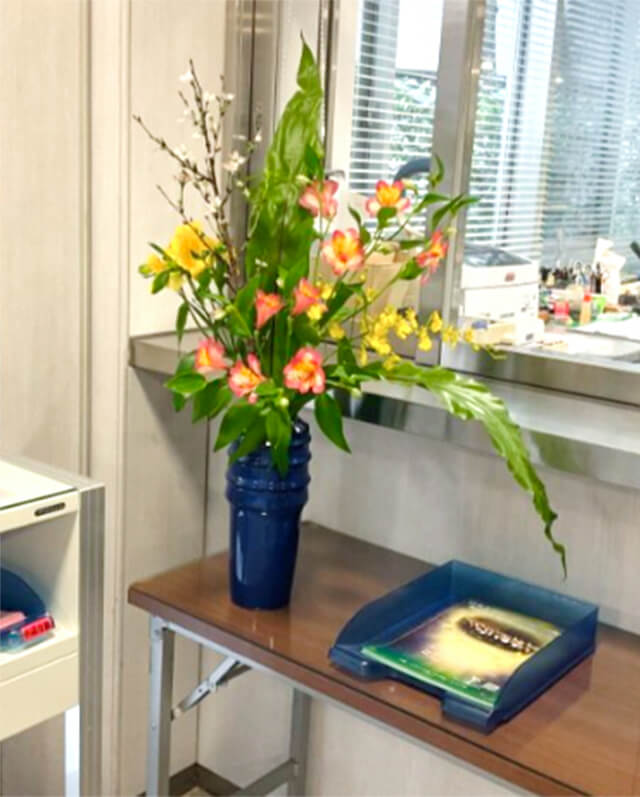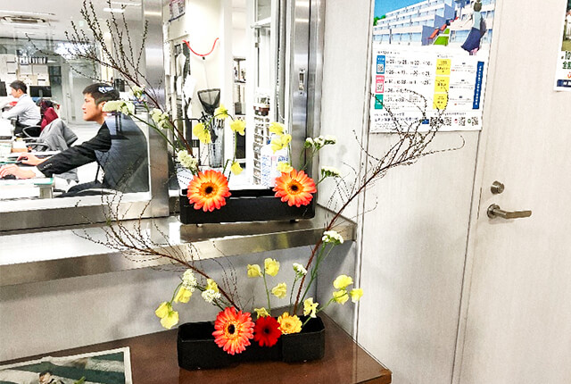 「毎日お花のお世話してくれているんだね。色んな生徒がお花のお世話しに来てくれている。事務室前に落ちた花びらなどもきちんと拾ってくれているよ。」と事務部長さん。