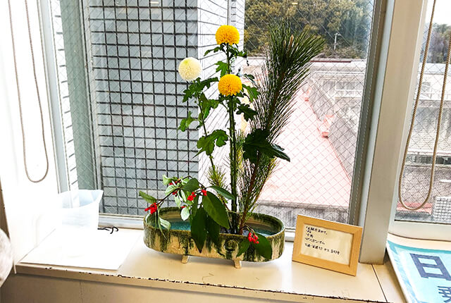 「生徒が生けていたんだ!いつも誰が生けているのだろうと気になっていました。」と美術のM先生。