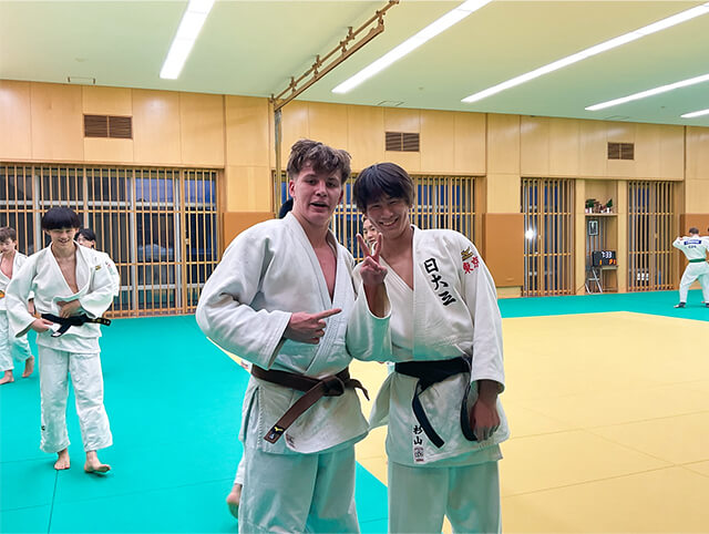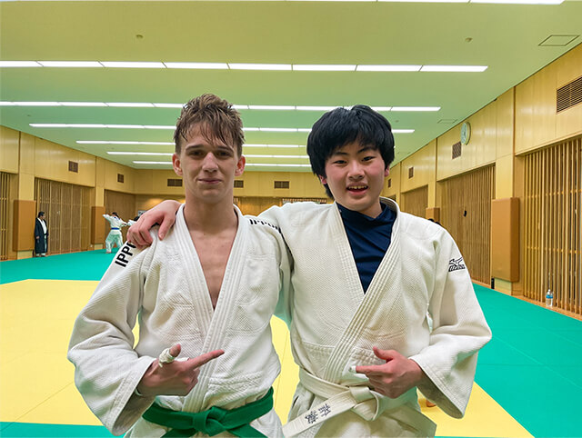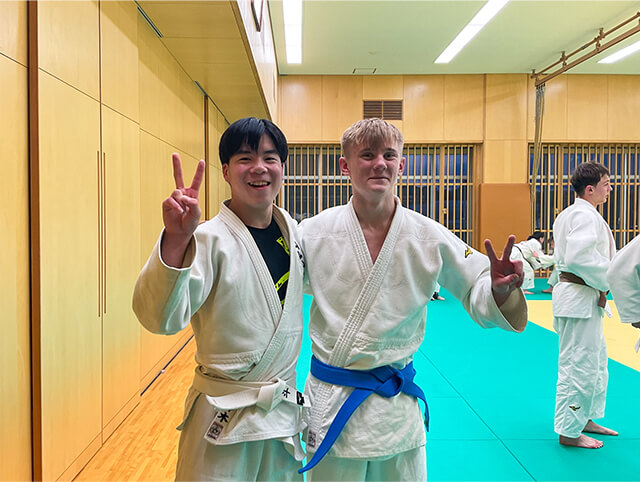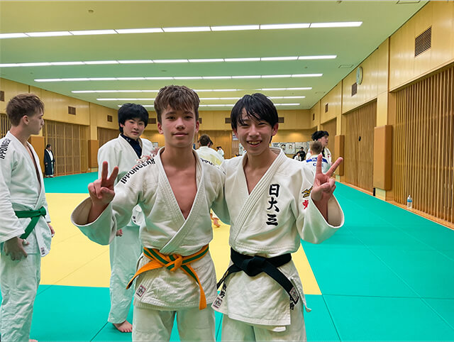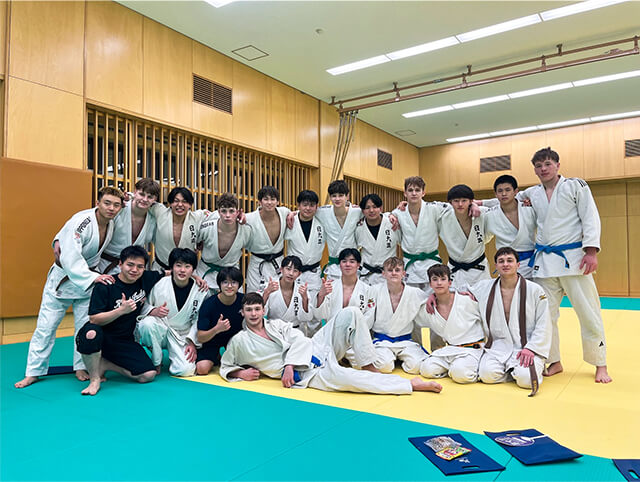 合同練習初日終了時には、言葉の壁がありながらも、本校の生徒たちはカタコトの英語で積極的にコミュニケーションを取り始め、柔道を通じた国際交流が自然に生まれる姿が見られました。