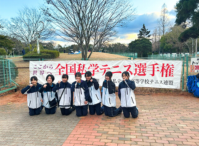 昨年12月25日~28日、神戸総合運動公園テニスコート(兵庫県)にて行われた第12回全国私立中学校テニス選手権大会に出場しました。都大会を勝ち上がり、新チーム結成時から目標としていた大会の出場権を獲得することができました。
